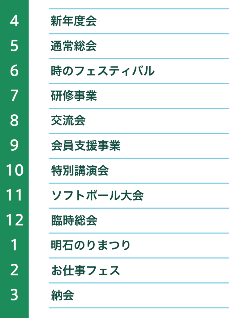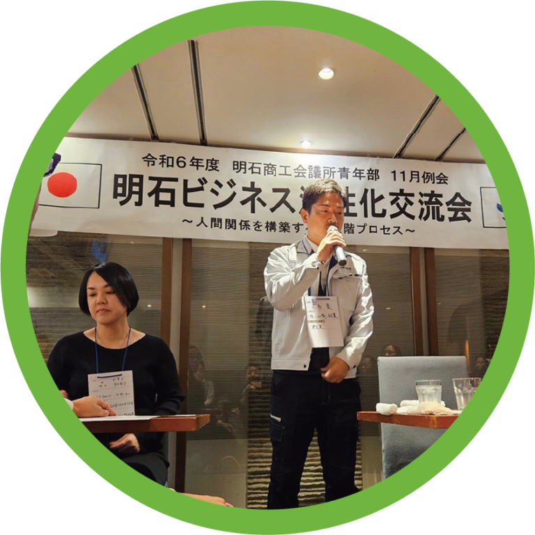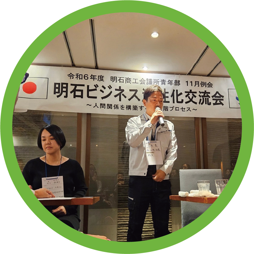 ビジネスを推進していくために大切なことは、まず顔の見える関係性を作ること。そして重要なのは、信頼関係を築いていくことです。そのためには、まず顔の見える関係性を作ることからスタートし、その先に自社業の発展、そして明石の商工発展に寄与するための活動ができると考えます。メンバーファーストで、あの人に会いに行きたいなと思われる人であること、そんな会を目指しましょう。