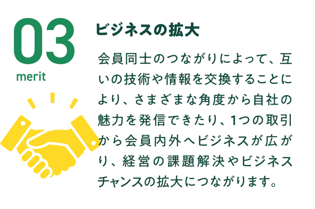 会員企業が仕事内容を紹介し合い、互いをより深く知ることを通じて ビジネスマッチングを促進する機会を創っています。